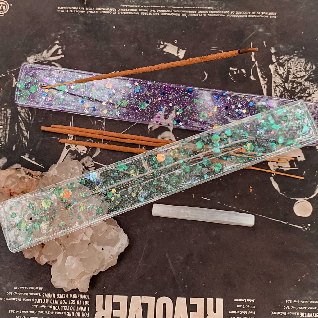 Incense holders created in any color or desired glitter made to burn your favorite incense.