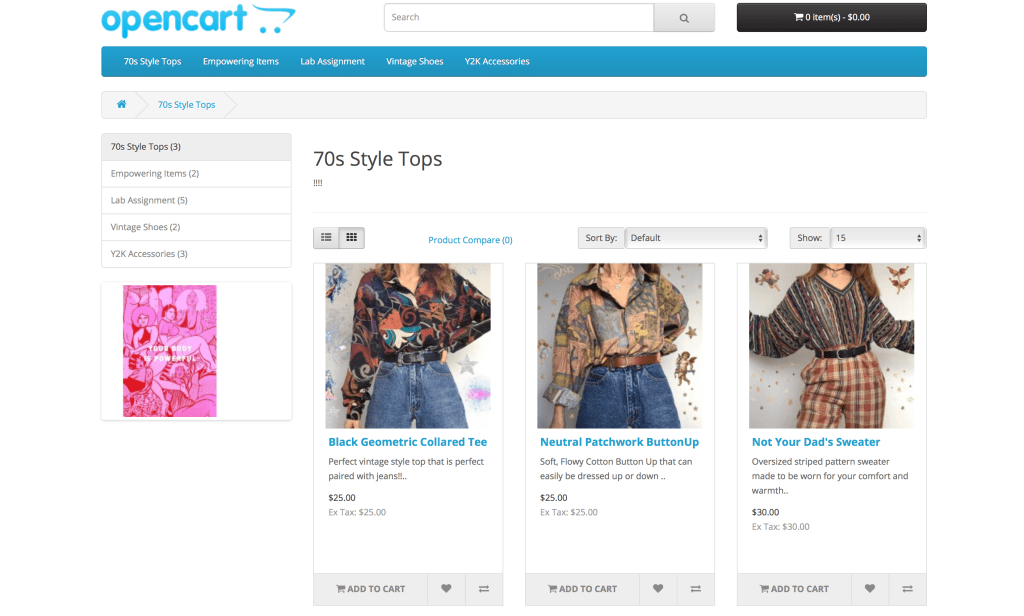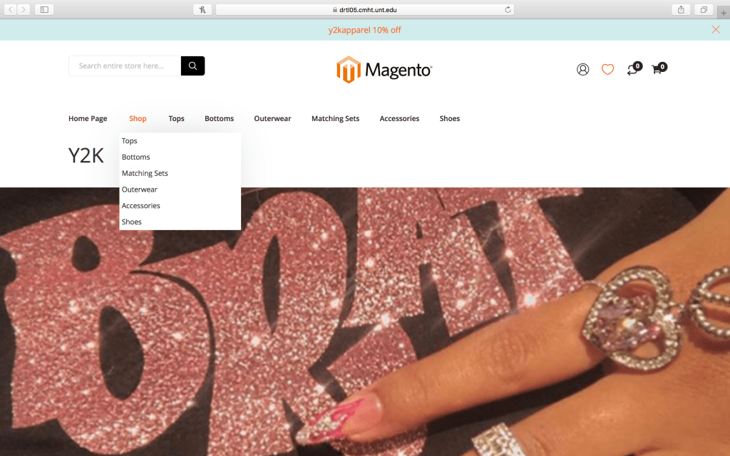 In Spring 2020, I took a DRTL 2080 which is a Digital Platforms and Web Site Development in Digital Retailing. Throughout this course I learned the basics of how to use CIS and HTML coding to help build a website and change an existing site. I was able to create a website on my own using OpenCart that dealt with women empowerment, that I I included a picture down below before the group project. However, in this particular project was done in a group and we all contributed to create a complete online storefront. I was in charge of the accessory section and I created my own bundles and configurable products. We used Magento and had to navigate the backend to change the template to match the idea of what we wanted our brand to be. Here are a few screenshots from the website. From this assignment, I learned how to create attribute sets for certain products and how to create discount codes that are to be used on particular dates and items.